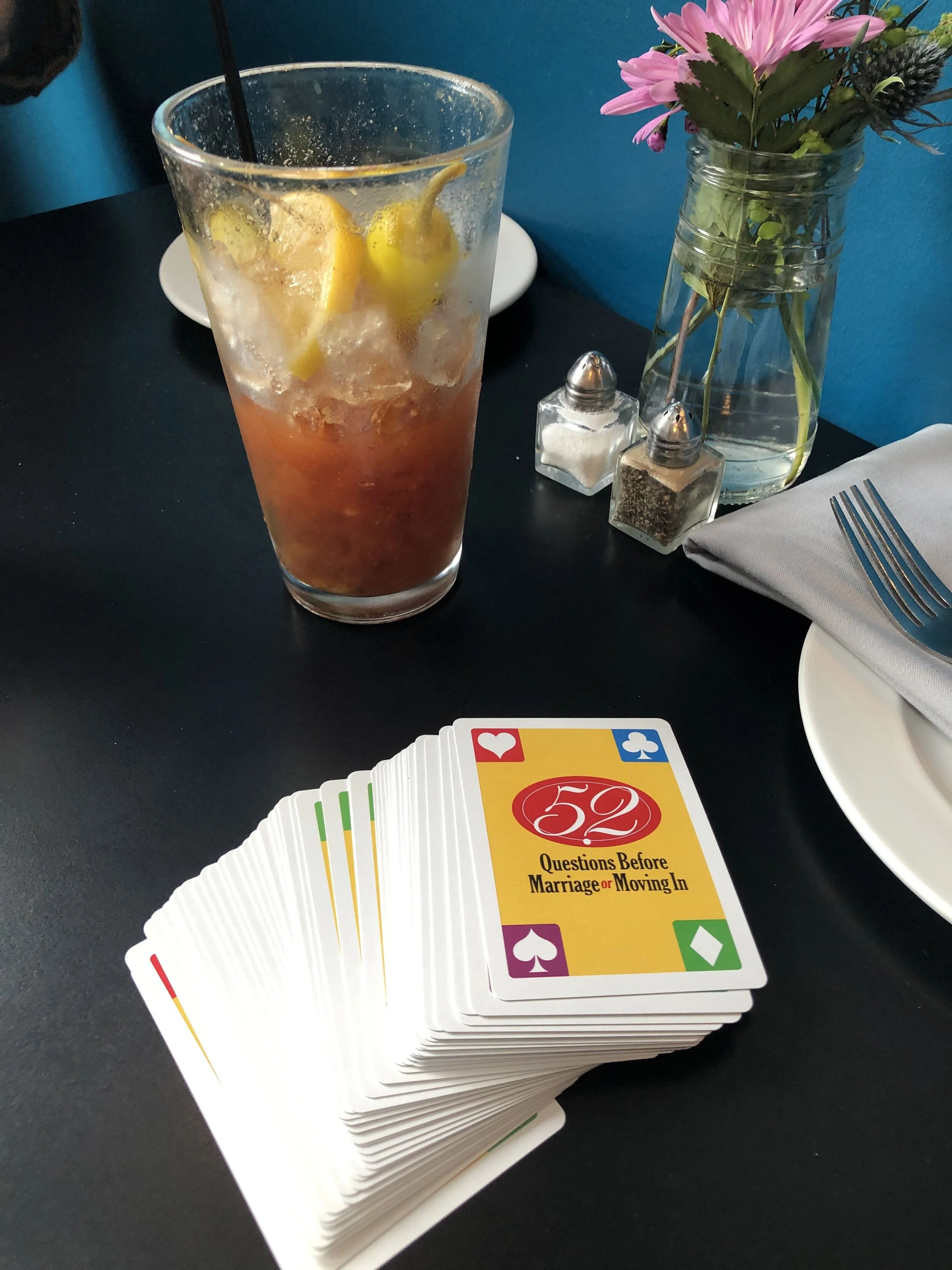 After chicken and waffles and two rounds of Bloody Marys (THANKS, LILLY’S BISTRO), we concluded that, though the questions are GREAT to go through before taking this big step, it was hard to make it into something fun that you could do with your spouse. HOWEVER, we did come up with a fun challenge you can take with the card set that will be productive, yet fun! Since there are 52 cards in the deck and 52 weeks in a year, it would be so beneficial, low maintenance, and through-provoking to take on a card a week.